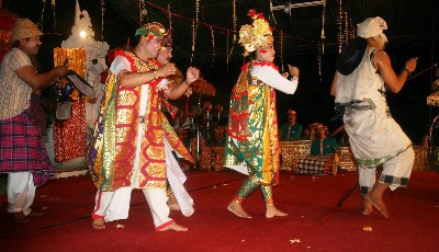 Pertunjukan tersebut mengisahkan rombongan keluarga kerajaan yang sedang bepergian dengan menggunakan transportasi laut tradisional (perahu motor). Dalam perjalanan perahu motor tersebut mengalami kecelakaan dan salah satu penumpang ada yang meninggal. Karena alat transportasi yang bersangkutan telah dilengkapi dengan Asuransi Jasa Raharja maka korban berhak memperoleh santunan sesuai Undang-Undang 33 tahun 1964,jo.P.P.No.17 tahun 1965. ( Aziz )