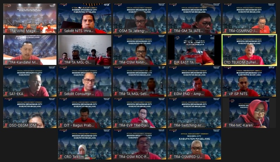 Melalui layanan video conference, kali ini Direktur Network & IT Solution Telkom, Zulhelfi Abidin bersama Direktur Consumer Service Telkom, Siti Choiriana meresmikan Magelang Modern Broadband City yang ditandai dengan penandatanganan prasasti digital (11/6/2020).