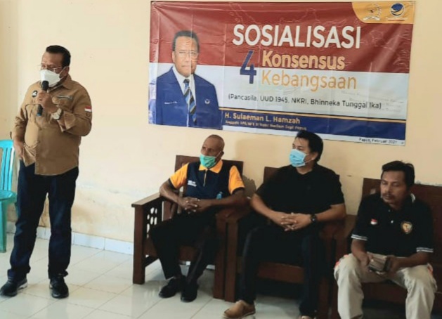 Kabupaten Merauke- Papua. Seputar Nusantara. Anggota DPR/ MPR RI dari Fraksi Partai NasDem, H. Sulaeman L. Hamzah, menyelenggarakan kegiatan Sosialisasi 4 Pilar Kebangsaan dalam rangka memenuhi tugas dan fungsinya sebagai Wakil Rakyat.