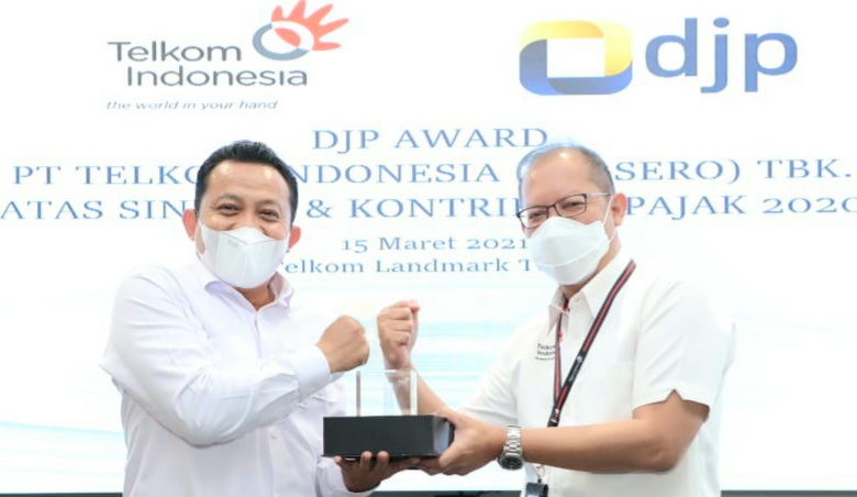 Jakarta. Seputar Nusantara. Direktorat Jenderal Pajak memberikan apresiasi kepada PT Telkom Indonesia (Persero) Tbk (Telkom) atas sinergi dan kontribusi pajak di tahun 2020. Penghargaan ini diserahkan langsung oleh Kepala KPP Wajib Pajak Besar Empat, Budi Prasetya kepada Direktur Keuangan Telkom, Heri Supriadi di Telkom Landmark Tower 15 Maret 2021.