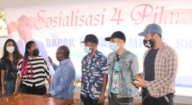 Mimika- Papua. Seputar Nusantara. Anggota DPR/ MPR RI dari Fraksi PAN (Partai Amanat Nasional), Mesakh Mirin, S.KM., M. Si., menyelenggarakan kegiatan Sosialisasi 4 Pilar Kebangsaan yang terdiri dari Pancasila, UUD ’45, Bhinneka Tunggal Ika, dan NKRI.