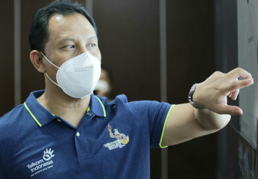 Keterangan foto : Direktur Enterprise & Business Service Telkom Edi Witjara meninjau & memastikan kesiapan dukungan TelkomGroup dalam penyelenggaraan PON XX Papua 2021 di Jayapura, Jumat (1/10).