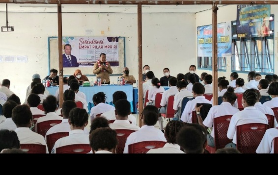 Tempat kegiatan Sosialisasi 4 Pilar Kebangsaan tersebut di Aula SMA YPK Merauke- Provinsi Papua.