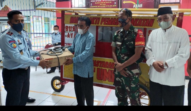Purworejo, Seputar Nusantara. Rumah Tahanan Negara Kelas IIB Purworejo- Jawa Tengah tak mau ketinggalan untuk memberikan perhatian kepada masyarakat Purworejo. Kali ini Usaha Kecil Mikro Menengah (UMKM) menjadi perhattian Rutan Purworejo. Pak Dwi seorang pedagang bubur ayam dan lontong opor diberikan bantuan perbaikan gerobak yang digunakan untuk berjualan. Beberapa kerusakan yang terdapat pada gerobak diperbaiki hingga gerobak layak untuk dipergunakan kembali.