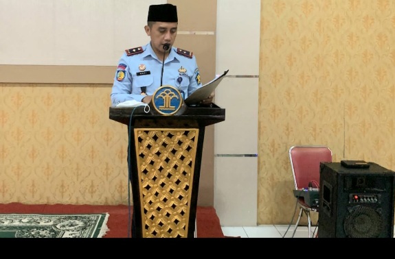 Keterangan foto : Kepala Rutan Kelas IIB Purworejo- Jawa Tengah, Mochamad Mukaffi menyampaikan amanat Menteri Hukum dan HAM Republik Indonesia Yasonna H. Laoly mengucapkan Selamat Hari Raya Idul Fitri kepada seluruh warga binaan pemasyarakatan Rutan Purworejo
