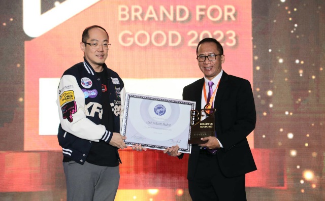 Keterangan foto Executive Vice President Digital Business & Technology Telkom Komang Budi Aryasa (kanan) menerima penghargaan Brand for Good 2023 untuk Leap-Telkom Digital dalam ajang The 8th WOW Brand Festive Day 2023 yang diselenggarakan oleh Markplus beberapa waktu yang lalu.