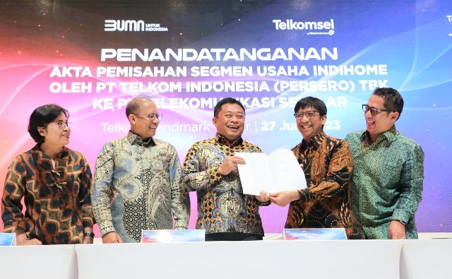 Percepat Pemerataan Konektivitas Digital Indonesia, Telkom Resmi Integrasikan IndiHome ke Telkomsel. Telkom dan Telkomsel Tandatangani Akta Pemisahan Segmen Usaha Sebagai Implementasi Inisiatif Fixed Mobile Convergence