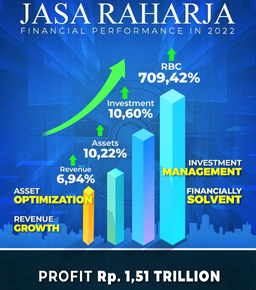 Jakarta. Seputar Nusantara. PT. Jasa Raharja mencatatkan laba bersih sebesar Rp 1,51 Triliun selama periode tahun buku 2022. Kontribusi terbesar atas capaian ini didapatkan oleh Perseroan dari pengelolaan investasi dan optimalisasi aset Perusahaan.