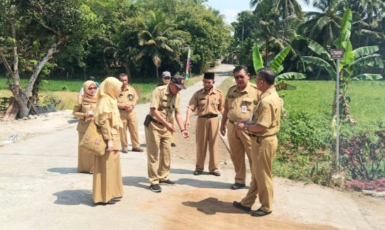 Keterangan foto : Asisten Bidang Perekonomian dan Pembangunan Pemerintah Kabupaten Purworejo, Drs. Sutrisno, M. Si., Kepala Bagian Pembangunan, Adjie Nur Hidajat, S.T., M.T., Kepala Dinas Perumahan Rakyat, Kawasan Permukiman dan Pertanahan, Eko Paskiyanto, A.Pi., MM., Kepala Bidang Pengembangan Perumahan Rakyat sekaligus Pejabat Pembuat Komitmen (PPK), Muhibbatul Karimah, S.P., MM., dan Lurah Cangkrep Kidul, saat melakukan monitoring dan evaluasi di lokasi proyek perbaikan jalan Kelurahan Cangkrep Kidul, pada Senin 31 Juli 2023