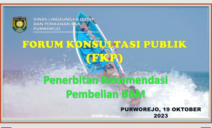 Purworejo. Seputar Nusantara. Dinas LHP (Lingkungan Hidup dan Perikanan) Kabupaten Purworejo- Provinsi Jawa Tengah menyelenggarakan kegiatan Forum Konsultasi Publik (FKP) dalam rangka membahas persoalan Penerbitan Rekomendasi Pembelian BBM (Bahan Bakar Minyak) bagi Nelayan dan Petambak di wilayah pesisir Selatan Kabupaten Purworejo.