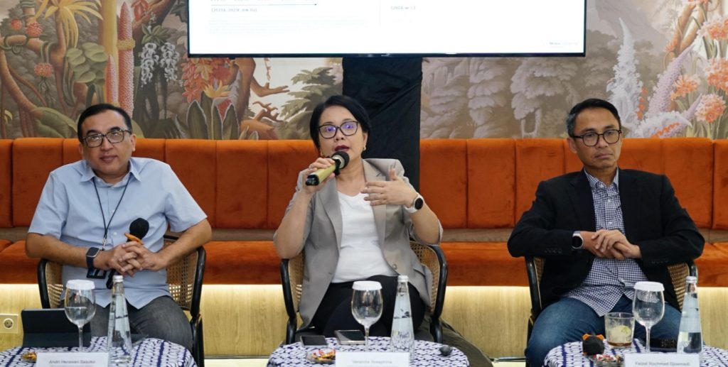 Direktur Enterprise & Business Service Telkom Veranita Yosephine bersama Direktur IT Digital Telkom Faizal R. Djoemadi, menyampaikan pada Media Update bersama para awak media di Jakarta, Kamis 14 Agustus 2025, bahwa sebagai digital transformation enabler, Telkom menghadirkan integrated digital ecosystem, antara lain melalui layanan Connectivity+, Internet of Things (IoT), Cybersecurity, dan Artificial Intelligence (AI).