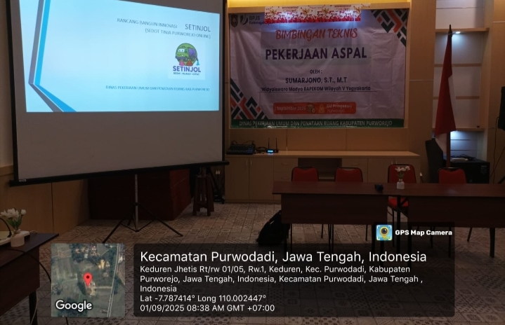 Purworejo. Seputar Nusantara. Dinas PUPR (Pekerjaan Umum dan Penataan Ruang) Kabupaten Purworejo- Provinsi Jawa Tengah hari ini Senin, 1 September 2025 menyelenggarakan kegiatan Bimtek (Bimbingan Teknis) Pekerjaan Aspal.