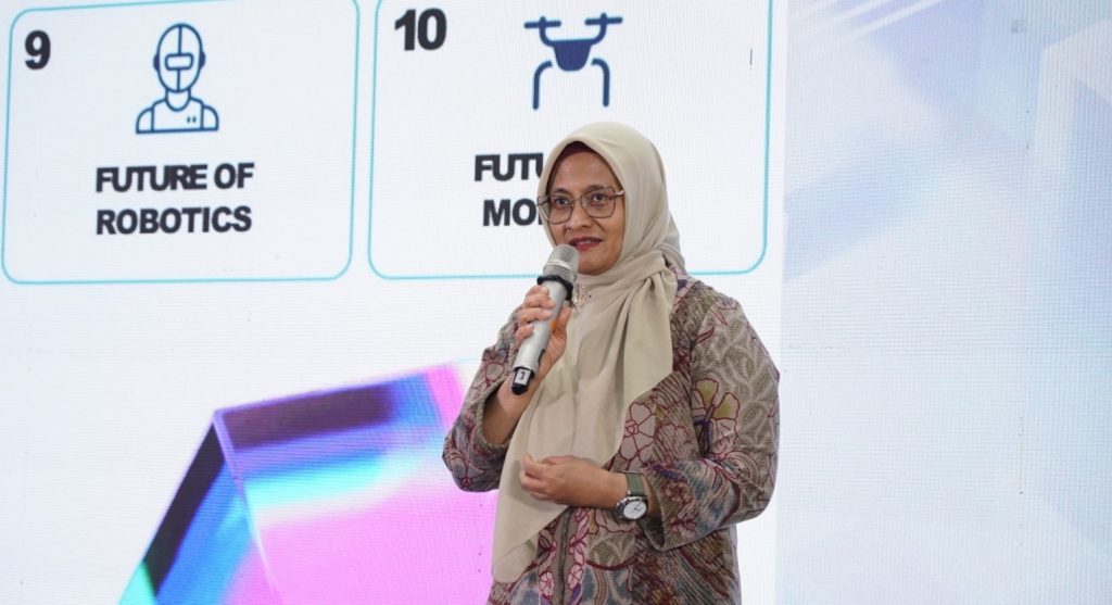 Keterangan foto : Direktur Utama PT. Telkom (Persero) Dian Siswarini saat memberikan pemaparan pada acara peluncuran Telkom AI Campus di Universitas Muhammadiyah Yogyakarta (UMY) pada Kamis 23 Oktober 2025