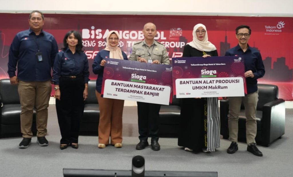 Selain pengembangan teknologi dan talenta digital, TelkomGroup juga menunjukkan komitmennya dalam menghadirkan dampak sosial yang nyata bagi masyarakat. Di Malang, Telkom menyalurkan bantuan kemanusiaan bagi korban bencana banjir kepada BPBD serta memberikan dukungan alat produksi bagi UMKM MakRum sebagai salah satu binaan Rumah BUMN Telkom. Inisiatif ini sejalan dengan peran TelkomGroup sebagai BUMN telekomunikasi digital yang tidak hanya berfokus pada inovasi dan pertumbuhan bisnis, tetapi juga berkontribusi aktif dalam mendorong perkembangan ekonomi digital dan kesejahteraan masyarakat. (Aziz)