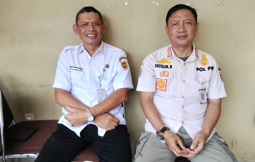 Keterangan foto : Fatqur Rohman, Sekretaris Satuan Polisi Pamong Praja dan Pemadam Kebakaran Kabupaten Purworejo (kanan) dan Teguh Wibowo, Kepala Bidang Trantibum Linmas (Ketentraman, Ketertiban Umum dan Perlindungan Masyarakat) (kiri)