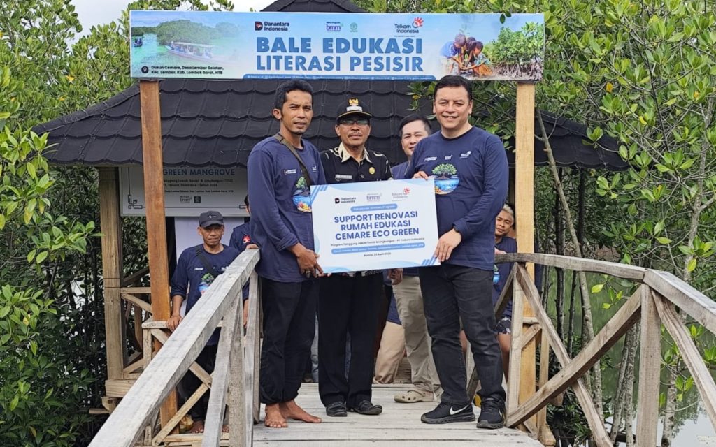 Keterangan foto : Telkom memberikan support renovasi Rumah Edukasi Cemare Eco Green diwakili oleh GM Witel Nusa Tenggara Muhammad Kafin Latif (kanan) di Pantai Pandanan, Desa Malaka, Kecamatan Pemenang, Kabupaten Lombok Utara, Nusa Tenggara Barat, Kamis (23/4).